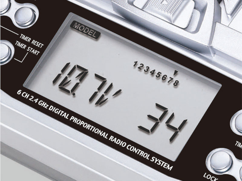 This advanced radio system features an 8-models memory, assignable switches, throttle lock, dual timer and two slider switches. The shift select function makes this system one of the most flexible 6-channel radios for air models.