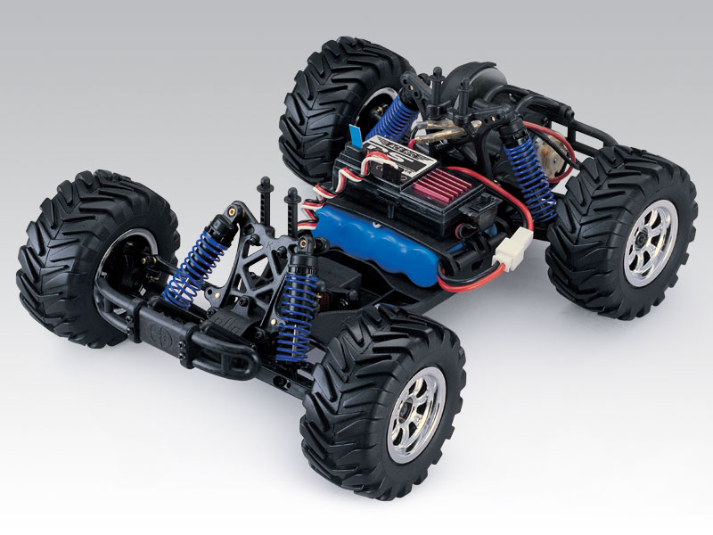 With these beast nothing is too big or small. Included are a six cell rechargeable battery and charger. The stock 280 motor will have you popping wheelies and smoking the competition. The 2 channel ACE R/C system will let you have extended range compared to your friends, while they are glitching out of control you will be headed for the monster double. When you come up to the woops or off-road terror these cats just purrr with there oil filled shocks.